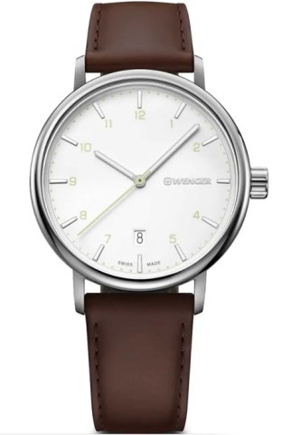 Мужские кварцевые часы Wenger 01.1731.117 коллекции Urban Classic. На данной модели отображается текущая дата. Стрелки покрыты люминесцентным напылением (светятся в темноте). Установлено минеральное стекло с сапфировым покрытием (устойчивое к царапинам). Кожаный ремешок. Завинчивающаяся задняя крышка часов. Водонепроницаемость WR100 (10 атм). Швейцарская сборка (Swiss made). Официальная гарантия от производителя — 3 года.