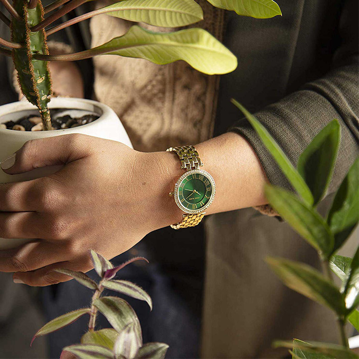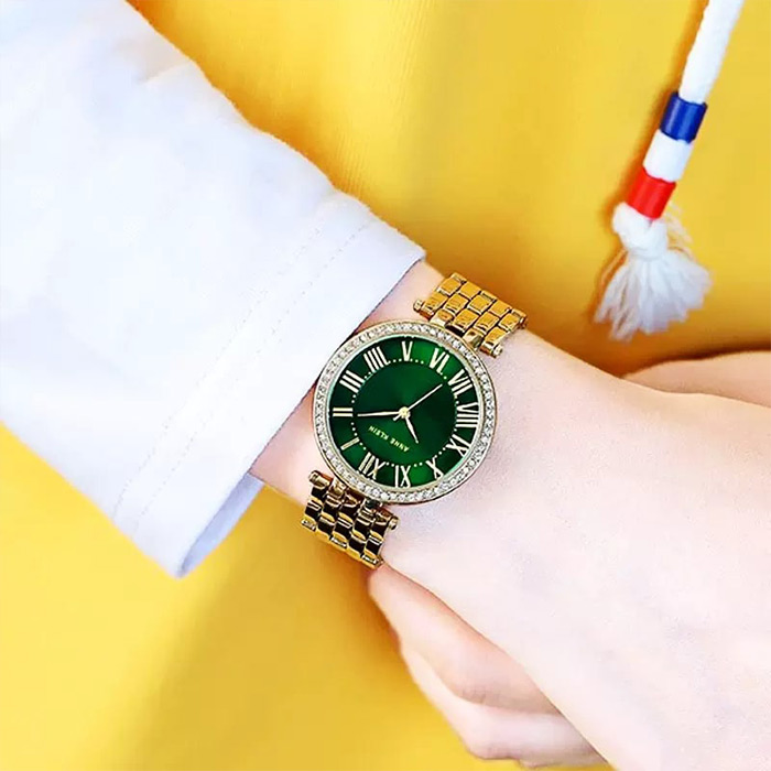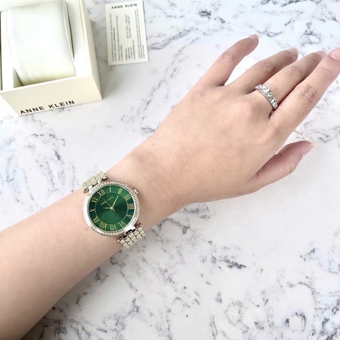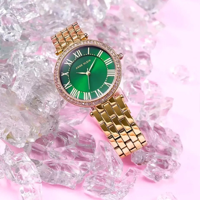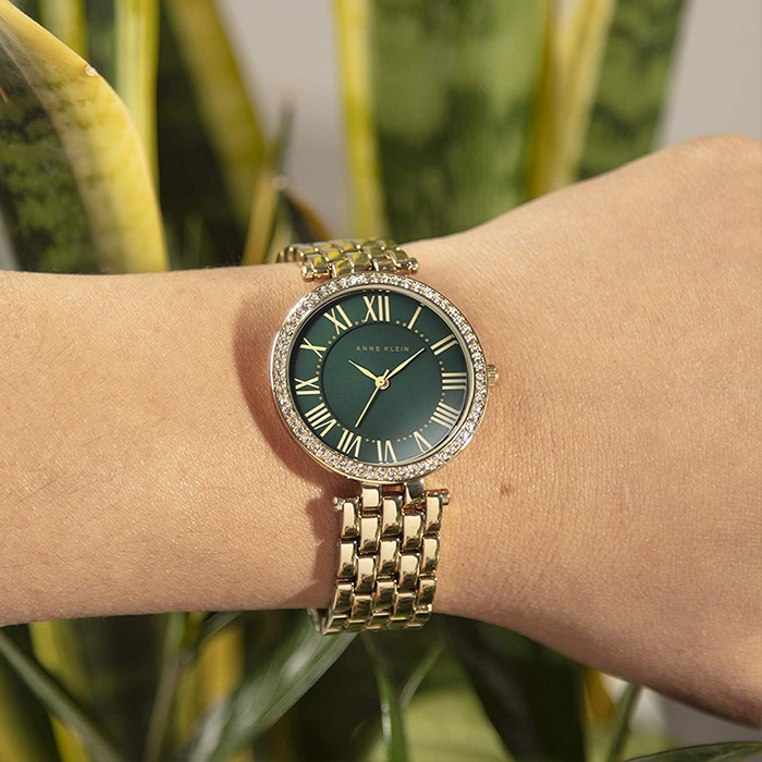 Женские кварцевые наручные часы Anne Klein 2230GNGB коллекции Crystal Metals. Циферблат выполнен по технологии Sunray (солнечные лучи). Корпус украшен кристаллами Swarovski. На корпус и браслет нанесено стойкое PVD покрытие. Водонепроницаемость WR (3 атм).