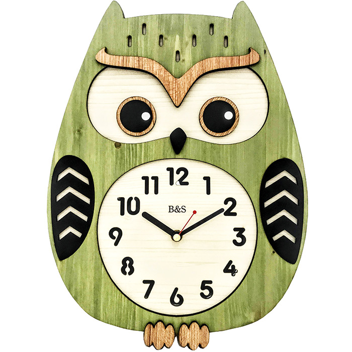 Кварцевые настенные часы B&S WMC-136 GRN. Оригинальные часы с корпусом в виде совы. Циферблат открытый, без стекла. Корпус из дерева (МДФ). Ход стрелок — плавный (бесшумный).