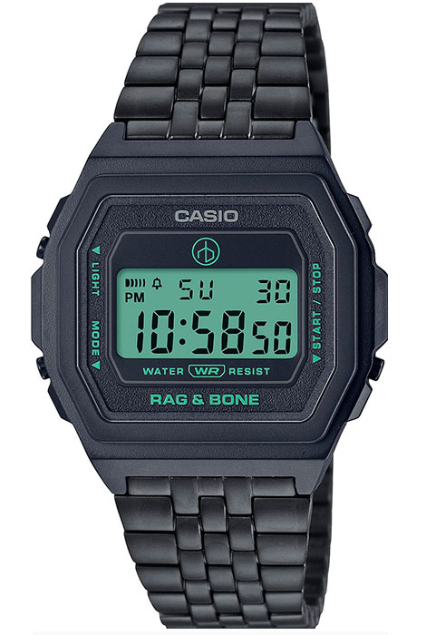 Мужские электронные кварцевые наручные часы Casio Vintage A1000RCB-1E с цифровой индикацией времени. Калибр механизма — 3479. Лимитированная серия. Выпущено ограниченное количество экземпляров данной модели часов. Данная модель выпущена в коллаборации с брендом модной одежды Rag & Bone и приурочена к 20-летию бренда. Функциональность данной модели: формат времени 12/24; автоматический календарь; будильник; сигнал начала часа; секундомер с точностью 1/100 секунды и измерением до 59 минут 59,99 cек.; диодная подсветка циферблата. Установлено устойчивое к появлению царапин сапфировое стекло. Корпус и браслет из нержавеющей стали. На корпус и браслет нанесено стойкое PVD покрытие. Водонепроницаемость WR (3 атм). Размеры корпуса: (ШxВxТ) 38x39.6x7.3 мм. Гарантийный срок — 3 года (1 год от производителя + 2 года от магазина).