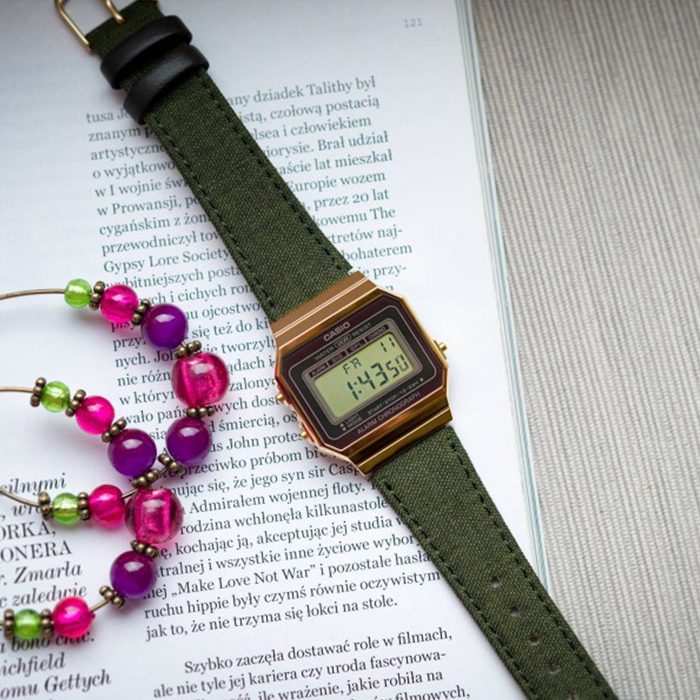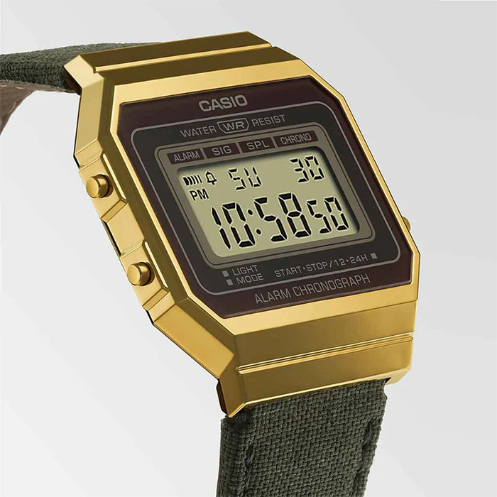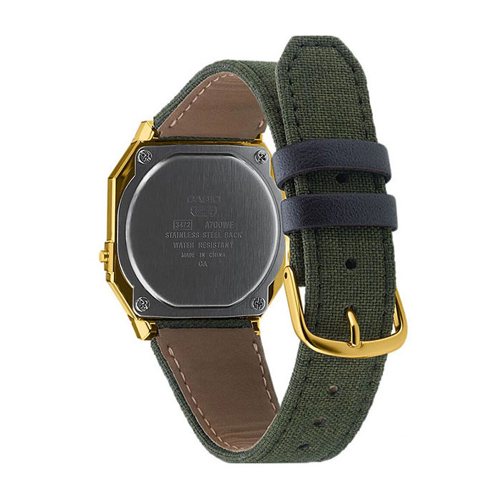 Электронные кварцевые наручные часы Casio Vintage A700WEGL-3A с цифровой индикацией времени. Калибр механизма — 3472. Функциональность данной модели: формат времени 12/24, автоматический календарь с установкой 28 дней на февраль, будильник, сигнал начала часа, секундомер с точностью 1/100 секунды и измерением до 59 минут 59,99 cек., диодная подсветка циферблата. Текстильный ремешок. Водонепроницаемость WR (3 атм). Размеры корпуса: (ШxВxТ) 35.5x37.4x6 мм. Гарантийный срок — 3 года (1 год от производителя + 2 года от магазина).