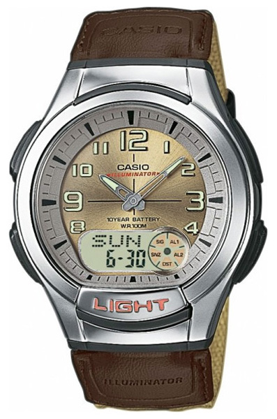 Кварцевые мужские наручные часы Casio AQ-180WB-5B с цифровой+стрелочной индикацией времени. Калибр механизма — 3793. Функциональность данной модели: формат времени 12/24, функция летнего времени (DST), мировое время 30 городов (29 часовых поясов), автоматический календарь до 2099 года, 3 независимых будильника, сигнал начала часа, секундомер с точностью 1/100 секунды и измерением до 23 часов 59 минут 59,99 cек., таймер обратного отсчета (диапазон времени 24 часа), записная книжка телефонных номеров на 30 записей, диодная подсветка циферблата и люминесцентное напыление на стрелках и метках часов. Водонепроницаемость WR100 (10 атм). Батарейка на 10 лет работы.