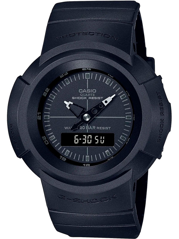 Противоударные кварцевые мужские наручные часы Casio AW-500BB-1E коллекции G-Shock с цифровой+стрелочной индикацией времени. Калибр механизма — 5416. Функциональность данной модели: формат времени 12/24; автоматический календарь до 2099 года; функция летнего времени (DST); двойное время; будильник; секундомер с точностью 1/100 секунды и измерением до 23 часов 59 минут 59,99 cек.; электролюминисцентная подсветка циферблата. Стрелки покрыты необритовым (Neobrite) люминесцентным напылением (светятся в темноте). Водонепроницаемость WR200 (20 атм). Размеры корпуса: (ШxВxТ) 47.7x55.2x14.7 мм. Гарантийный срок — 3 года (1 год от производителя + 2 года от магазина).