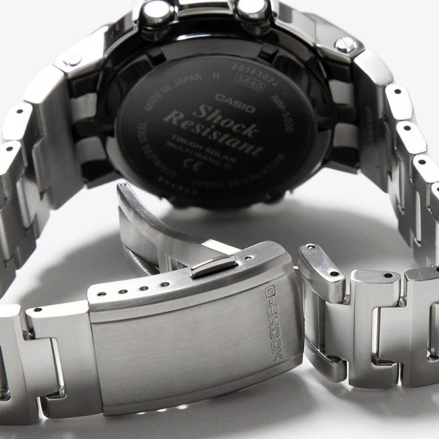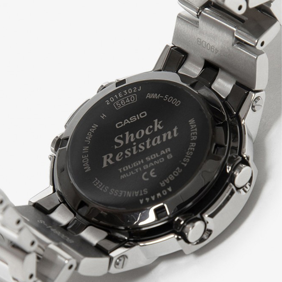 Противоударные кварцевые мужские наручные часы на солнечной батарее Casio AWM-500D-1A коллекции G-Shock с цифровой+стрелочной индикацией времени и радиоконтролем точного времени. Калибр механизма — 5640. Аккумулятор данной модели заряжается от любого источника света. Срок работы аккумулятора с полным зарядом — 11 месяцев при обычном использовании без воздействия света после зарядки, 28 месяцев при хранении в полной темноте с включенной функцией энергосбережения после полной зарядки. Примерный срок службы аккумулятора — 10 лет. Функциональность данной модели: радиоконтроль точного времени (Wave Ceptor); формат времени 12/24; автоматический календарь до 2099 года; функция летнего времени (DST); мировое время 48 городов (31 часовой пояс); 5 будильников; сигнал начала часа; секундомер с точностью 1/100 секунды и измерением до 59 минут 59,99 cек.; таймер в диапазоне времени 100 минут с шагом 1 секунда; двойная диодная подсветка циферблата с функцией авто (включается при наклоне часов на 40°) и возможностью выбора продолжительности свечения (1.5 или 3 секунды) + необритовое (Neobrite) покрытие на стрелках для длительного послесвечения в темноте; функция выключения звука нажатия кнопок (Mute); индикатор уровня заряда аккумулятора и режим сохранения энергии (стрелки останавливаются для экономии энергии, когда часы остаются в темноте); функция перемещения стрелок (помогает определить значения в окошке с цифровой индикацией, когда стрелки его закрывают). Корпус и браслет изготовлены из нержавеющей стали. Завинчивающаяся задняя крышка. Водонепроницаемость WR200 (20 атм). Размеры корпуса: (ШxВxТ) 44.5x51.8x14.2 мм. Гарантийный срок — 3 года (1 год от производителя + 2 года от магазина).