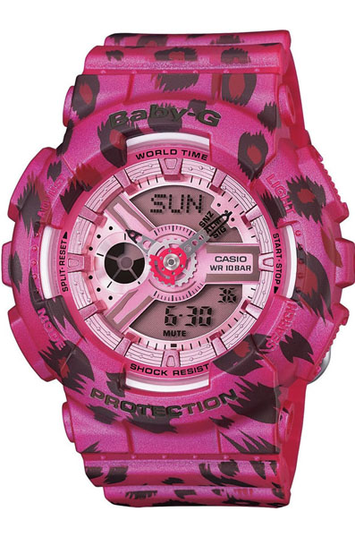 Противоударные кварцевые женские наручные часы Casio BA-110LP-4A коллекции Baby-G с двойной индикацией времени. Калибр механизма — 5338. Функциональность данной модели: формат времени 12/24, мировое время 48 городов (29 часовых поясов), автоматический календарь до 2099 года, функция летнего времени (DST), 5 независимых будильников, сигнал начала часа, секундомер с точностью 1/100 секунды и измерением до 23 часов 59 минут 59,99 cек., таймер обратного отсчета (диапазон времени 24 часа), диодная подсветка циферблата. Водонепроницаемость WR100 (10 атм).