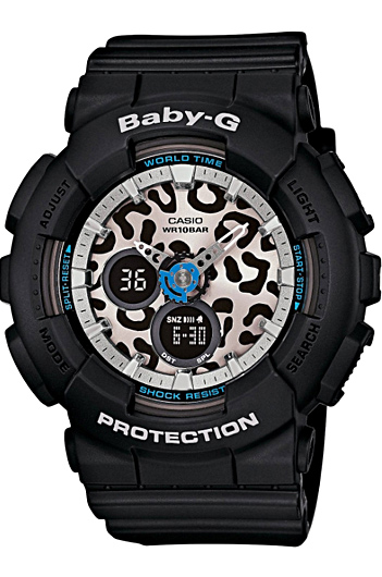 Противоударные кварцевые женские наручные часы Casio BA-120LP-1A коллекции Baby-G с двойной индикацией времени. Калибр механизма — 5457. Функциональность данной модели: формат времени 12/24, мировое время 27 городов (29 часовых поясов), автоматический календарь до 2039 года, функция летнего времени (DST), 5 независимых будильников, сигнал начала часа, секундомер с точностью 1/100 секунды и измерением до 59 минут 59,99 cек., таймер обратного отсчета (диапазон времени 60 минут), диодная подсветка циферблата. Водонепроницаемость WR100 (10 атм).