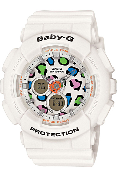 Противоударные кварцевые женские наручные часы Casio BA-120LP-7A1 коллекции Baby-G с двойной индикацией времени. Калибр механизма — 5457. Функциональность данной модели: формат времени 12/24, мировое время 27 городов (29 часовых поясов), автоматический календарь до 2039 года, функция летнего времени (DST), 5 независимых будильников, сигнал начала часа, секундомер с точностью 1/100 секунды и измерением до 59 минут 59,99 cек., таймер обратного отсчета (диапазон времени 60 минут), диодная подсветка циферблата. Водонепроницаемость WR100 (10 атм).