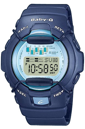 Противоударные кварцевые женские наручные часы Casio BG-1001-2C коллекции Baby-G с цифровой индикацией времени. Калибр механизма — 3035. Функциональность данной модели: формат времени 12/24, мировое время 48 городов (29 часовых поясов), автоматический календарь до 2099 года, функция летнего времени (DST), 5 независимых будильников, сигнал начала часа, секундомер с точностью 1/100 секунды и измерением до 59 минут 59,99 cек., таймер обратного отсчета (диапазон времени 60 минут), электролюминесцентная подсветка циферблата, функция выключения звука кнопок (Mute), Водонепроницаемость WR200 (20 атм).