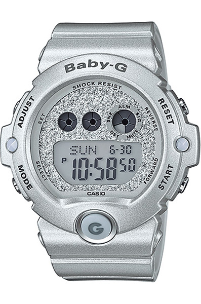 Противоударные кварцевые женские наручные часы Casio BG-6900SG-8E коллекции Baby-G с цифровой индикацией времени. Калибр механизма — 3297. Функциональность данной модели: формат времени 12/24, мировое время 48 городов (29 часовых поясов), автоматический календарь до 2099 года, функция летнего времени (DST), 5 независимых будильников, сигнал начала часа, секундомер с точностью 1/100 секунды и измерением до 23 часов 59 минут 59,99 cек., таймер обратного отсчета (диапазон времени 24 часа), электролюминесцентная подсветка циферблата, функция выключения звука кнопок (Mute), Водонепроницаемость WR200 (20 атм).