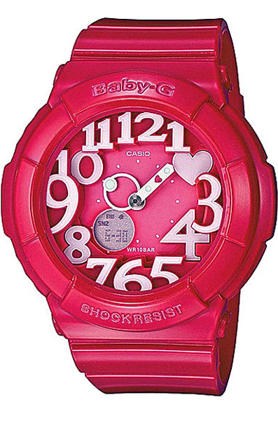 Противоударные кварцевые женские наручные часы Casio BGA-130-4B коллекции Baby-G с двойной индикацией времени. Калибр механизма — 5194. Функциональность данной модели: формат времени 12/24, мировое время 27 городов (29 часовых поясов), автоматический календарь до 2039 года, функция летнего времени (DST), 5 независимых будильников, сигнал начала часа, секундомер с измерением до 59 минут 59,99 cек., таймер обратного отсчета (диапазон времени 60 минут), диодная подсветка циферблата. Водонепроницаемость WR100 (10 атм).