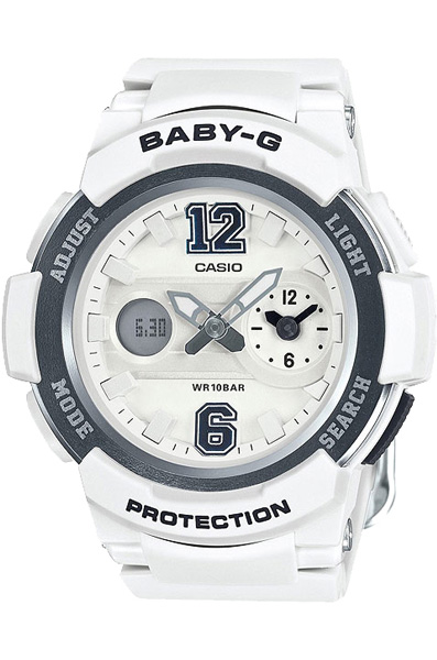 Противоударные кварцевые женские наручные часы Casio BGA-210-7B1 коллекции Baby-G с двойной индикацией времени. Калибр механизма — 5465. Функциональность данной модели: формат времени 12/24, мировое время 48 городов (31 часовой пояс), автоматический календарь до 2099 года, функция летнего времени (DST), будильник, сигнал начала часа, секундомер с измерением до 59 минут 59 cек., таймер обратного отсчета (диапазон времени 60 минут), диодная подсветка циферблата, режим выключения звука нажатия кнопок (Mute). Водонепроницаемость WR100 (10 атм).