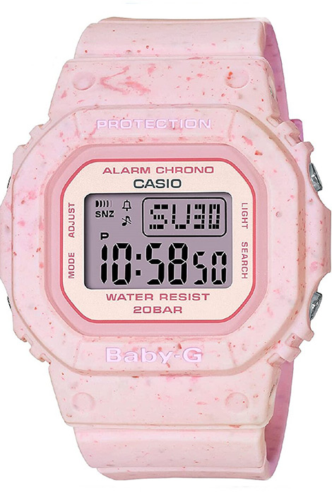 Противоударные кварцевые женские наручные часы Casio BGD-560CR-4 коллекции Baby-G с цифровой индикацией времени. Калибр механизма — 3290. Функциональность данной модели: формат времени 12/24, мировое время 48 городов (29 часовых поясов), автоматический календарь до 2099 года, функция летнего времени (DST), 5 независимых будильников, сигнал начала часа, секундомер с точностью 1/100 секунды и измерением до 59 минут 59,99 cек., таймер обратного отсчета (диапазон времени 24 часа), электролюминесцентная подсветка циферблата с возможностью выбора времени свечения (1.5 или 3 секунды), функция выключения звука кнопок (Mute), Водонепроницаемость WR200 (20 атм). Размеры корпуса: (ШxВxТ) 40x44.7x12.5 мм. Гарантийный срок — 3 года (1 год от производителя + 2 года от магазина).