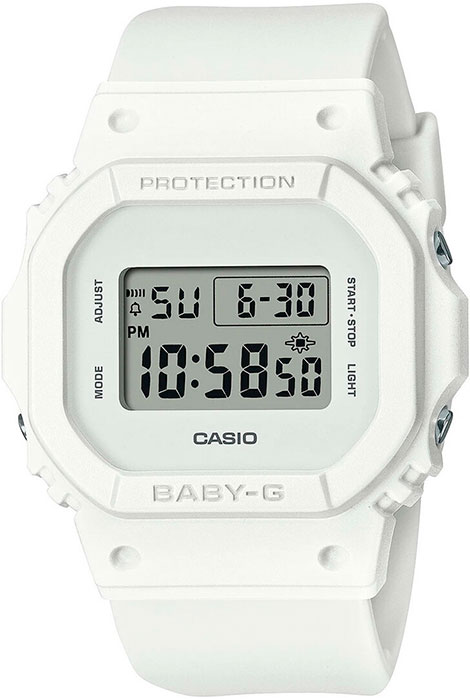 Противоударные кварцевые женские наручные часы Casio BGD-565CS-7 коллекции Baby-G с цифровой индикацией времени. Калибр механизма — 3523. Функциональность данной модели: формат времени 12/24, автоматический календарь до 2099 года, функция летнего времени (DST), будильник, сигнал начала часа, секундомер с точностью 1/100 секунды и измерением до 24 часов, таймер обратного отсчета (диапазон времени 24 часа) с автоповтором, диодная подсветка циферблата (Super Illuminator) с функцией послесвечения. В комплекте дополнительный ремешок и рамка корпуса. Водонепроницаемость WR100 (10 атм). Размеры корпуса: (ШxВxТ) 37.9x42.1x11.3 мм. Гарантийный срок — 3 года (1 год от производителя + 2 года от магазина).