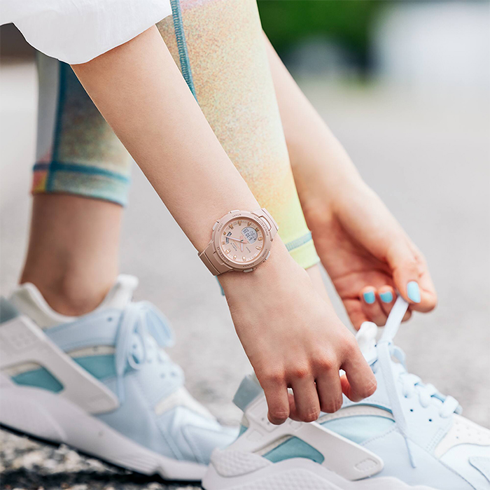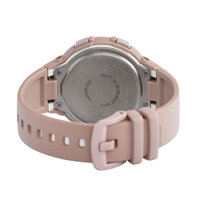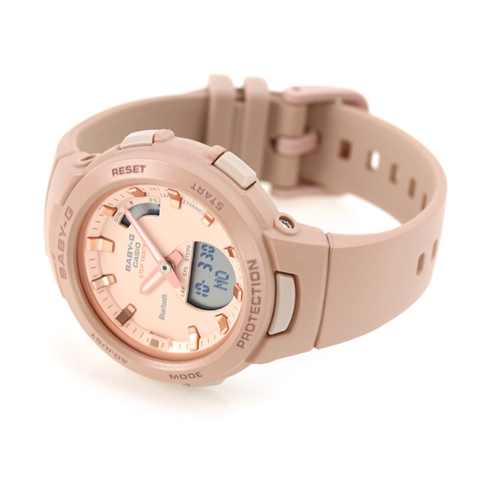 Противоударные кварцевые женские наручные часы Casio BSA-B100CS-4A коллекции Baby-G с функцией шагомера и технологией Bluetooth®. Калибр механизма — 5556. С помощью Bluetooth® вы можете подключить часы к смартфону и с помощью приложения BABY-G Connected получить доступ к полезным функциям. Часы автоматически связываются с телефоном через Bluetooth® и проверяют точность времени 4 раза в сутки. Просмотр количества шагов за 24 часа, интенсивность упражнений и физических нагрузок. Просмотр еженедельного количества шагов и числа сожженных калорий. Просмотр информации секундомера о времени прохождения кругов или промежуточных результатах (до 200 записей). Настройка программируемых таймеров и создание групп из нескольких таймеров. Настройка мирового времени. Функция поиска телефона, можно включить тоновый сигнал на телефоне, что позволит быстро найти телефон. Функциональность данной модели: формат времени 12/24, автоматический календарь до 2099 года, функция летнего времени (DST), функция двойного времени, 5 независимых будильников, сигнал начала часа, секундомер с измерением до 23 часов 59 минут 59 cек. и записью данных (до 200 записей), 5 независимых таймеров обратного отсчета (диапазон времени 60 минут), двойная диодная подсветка циферблата с функцией авто (включается при наклоне часов на 40°) и регулировкой времени подсветки 1,5 или 3 секунды + необритовое (Neobrite) покрытие на стрелках для длительного послесвечения в темноте, режим выключения звука нажатия кнопок (Mute), функция смещения стрелок для удобного просмотра информации на цифровом экране. Подсчет количества шагов с помощью 3-х осевого аксилометра. Напоминание о активности: Информирует Вас о том, что количество шагов слишком мало, с помощью дисплея и звукового сигнала. График количества шагов: почасовое количество шагов за последние 11 часов на 6-уровневом графике Индикатор количества шагов. Режим энергосбережения: Автоматический переход датчика в режим ожидания после фиксированного периода бездействия. Диапазон подсчета и отображения количества шагов: от 0 до 999 999. Водонепроницаемость WR100 (10 атм). Размеры корпуса: (ШxВxТ) 41.4x49.6x12.6 мм. Гарантийный срок — 3 года (1 год от производителя + 2 года от магазина).