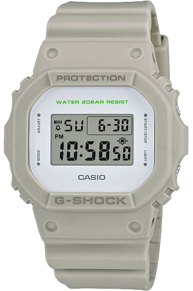 Противоударные кварцевые мужские наручные часы Casio DW-5600M-8E коллекции G-Shock с цифровой индикацией времени. Калибр механизма — 3229. Функциональность данной модели: формат времени 12/24, автоматический календарь до 2099 года, функция летнего времени (DST), многофункциональный будильник, сигнал начала часа, секундомер с точностью 1/100 секунды (для первых 60 минут), 1 секунда (после 60 минут) и измерением до 23 часов 59 минут 59,99 cек., таймер обратного отсчета (диапазон времени 24 часа), электролюминесцентная подсветка циферблата. Водонепроницаемость WR200 (20 атм).