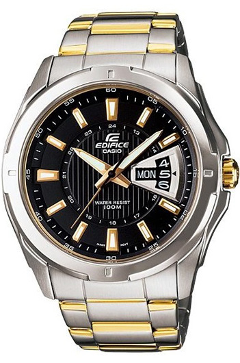 Мужские кварцевые наручные часы Casio EF-129SG-1A коллекции Edifice. Калибр механизма — 5125. На данной модели отображается дата и день недели. Стрелки и метки покрыты люминесцентным напылением (светятся в темноте). Водонепроницаемость WR100 (10 атм). Завинчивающаяся задняя крышка.