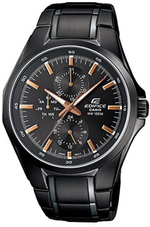 Мужские кварцевые наручные часы Casio EF-339BK-1A9 коллекции Edifice. Калибр механизма — 1794. На данной модели отображается дата, день недели и время суток (24-х часовая шкала). Стрелки и метки покрыты люминесцентным напылением (светятся в темноте). Водонепроницаемость WR100 (10 атм). Завинчивающаяся задняя крышка.