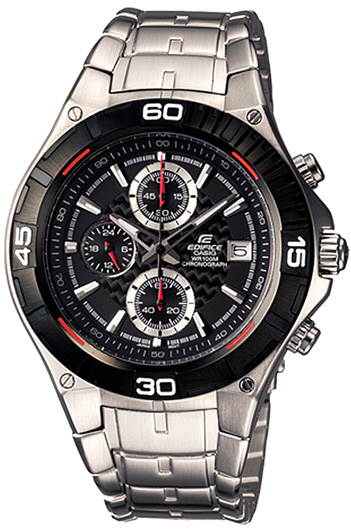 Мужские кварцевые наручные часы с хронографом (секундомером) Casio EF-520SP-1A коллекции Edifice. Калибр механизма — 4307. На данной модели отображается дата и время суток (24-х часовая шкала). Секундомер может отсчитывать до 60 минут. Стрелки и метки покрыты люминесцентным напылением (светятся в темноте). Водонепроницаемость WR100 (10 атм). Завинчивающаяся задняя крышка.