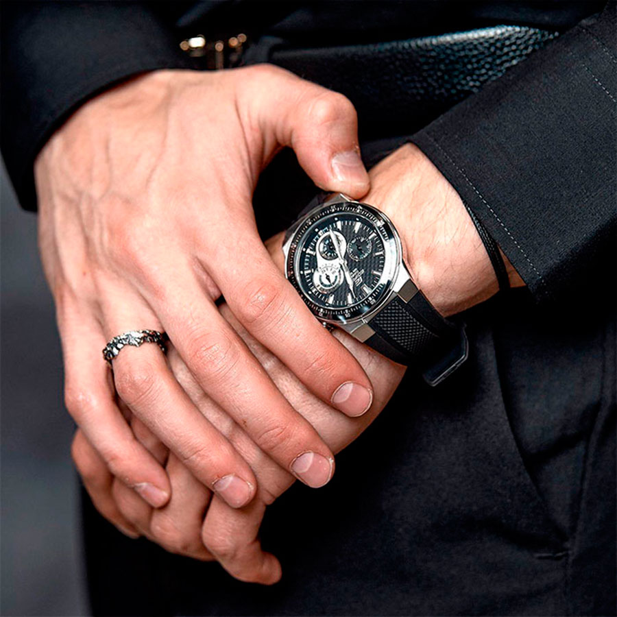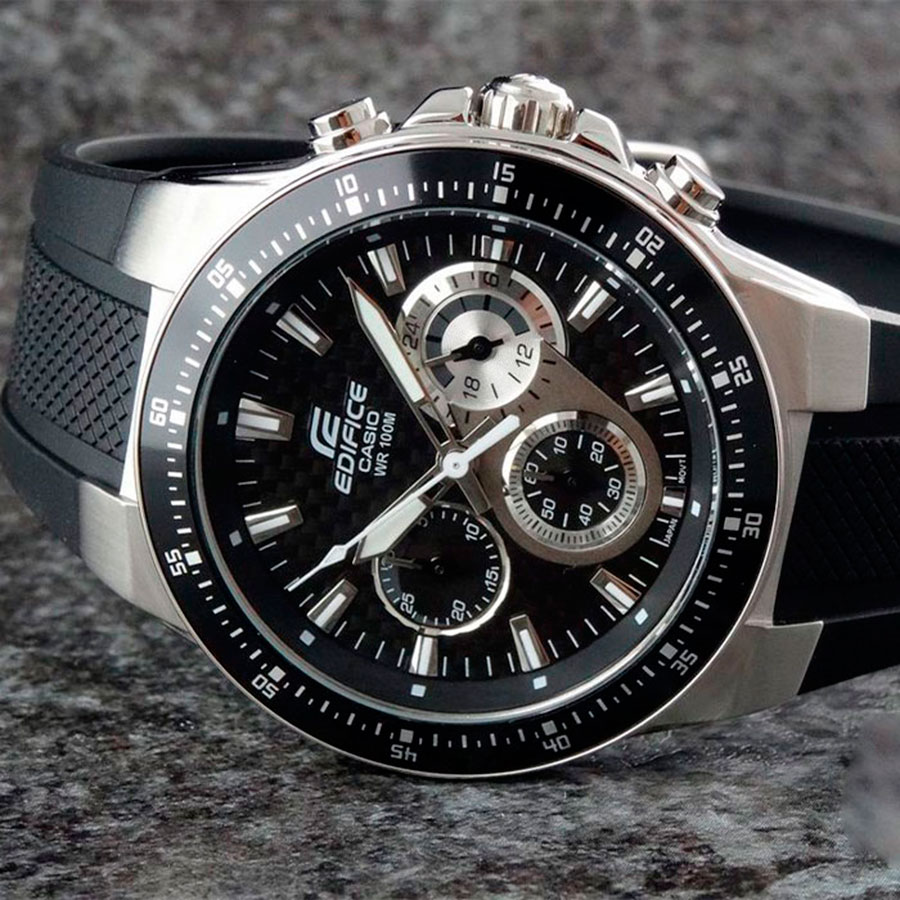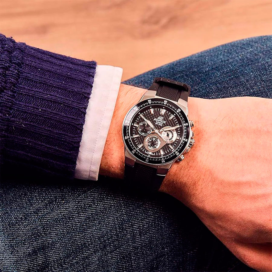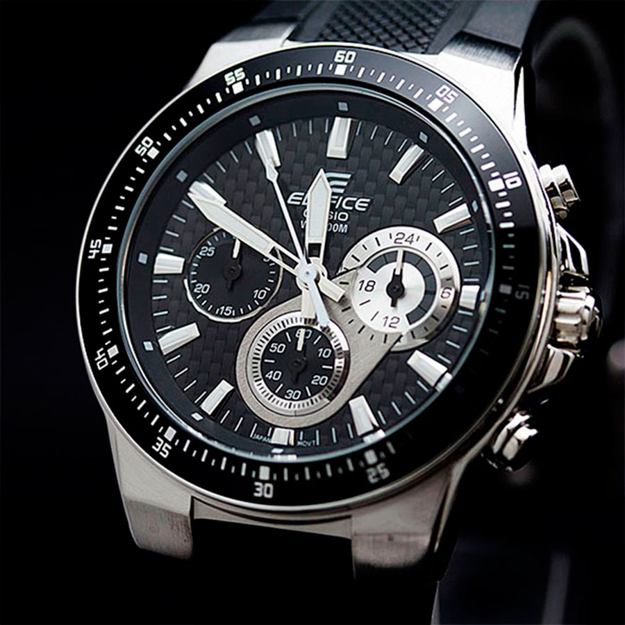 Мужские кварцевые наручные часы с хронографом (секундомером) Casio EF-552-1A коллекции Edifice. Калибр механизма — 5119. На данной модели отображается дата и время суток (24-х часовая шкала). Секундомер может отсчитывать до 30 минут. Стрелки и метки покрыты люминесцентным напылением (светятся в темноте). Водонепроницаемость WR100 (10 атм). Завинчивающаяся задняя крышка. Размеры корпуса: Диаметр 43.4 мм; толщина 11.8 мм Гарантийный срок — 3 года (1 год от производителя + 2 года от магазина).