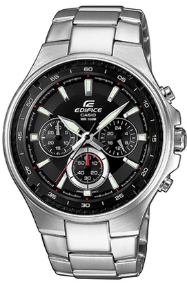 Мужские кварцевые наручные часы с хронографом (секундомером) Casio EF-562D-1A коллекции Edifice. Калибр механизма — 5119. На данной модели отображается дата и время суток (24-х часовая шкала). Секундомер может отсчитывать до 30 минут. Стрелки и метки покрыты люминесцентным напылением (светятся в темноте). Водонепроницаемость WR100 (10 атм). Завинчивающаяся задняя крышка.