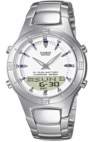 Кварцевые мужские наручные часы Casio EFA-110D-7A с цифровой+стрелочной индикацией времени. Калибр механизма — 2747. Функциональность данной модели: формат времени 12/24, функция летнего времени (DST), мировое время 30 городов (29 часовых поясов), автоматический календарь до 2099 года, 3 независимых будильника, сигнал начала часа, секундомер с точностью 1/100 секунды и измерением до 23 часов 59 минут 59,99 cек., таймер обратного отсчета (диапазон времени 24 часа), записная книжка телефонных номеров на 30 записей, диодная подсветка циферблата и люминесцентное напыление на стрелках. Водонепроницаемость WR100 (10 атм). Батарейка на 10 лет работы.