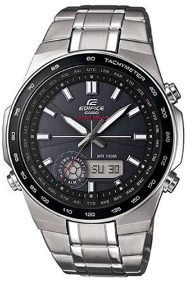 Кварцевые мужские наручные часы на солнечной батарее Casio EFA-134SB-1A1 коллекции Edifice. Калибр механизма — 5200. Функциональность данной модели: режим сохранения энергии, индикатор заряда батареи, формат времени 12/24, функция летнего времени (DST), мировое время 29 городах (29 часовых поясов), автоматический календарь до 2099 года, 5 независимых будильников, сигнал начала часа, секундомер с точностью 1/100 секунды и измерением до 59 минут 59,99 cек., таймер обратного отсчета (диапазон времени 100 минут), функция выключения звука кнопок (Mute), диодная подсветка циферблата и люминесцентное напыление на стрелках и метках часов. Водонепроницаемость WR100 (10 атм).