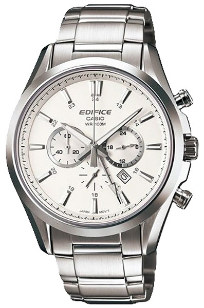 Мужские кварцевые наручные часы с хронографом (секундомером) и с сапфировым стеклом Casio EFB-504D-7A коллекции Edifice. Калибр механизма — 4391. На данной модели отображается дата и время суток (24-х часовая шкала). Присутствует функция двойного времени (Dual Time). Секундомер может отсчитывать до 60 минут. Стрелки и метки покрыты люминесцентным напылением (светятся в темноте). Водонепроницаемость WR100 (10 атм). Завинчивающаяся задняя крышка.