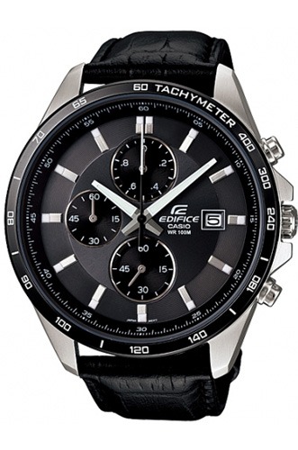 Мужские кварцевые наручные часы с хронографом (секундомером) Casio EFR-512L-8A коллекции Edifice. Калибр механизма — 5244. На данной модели отображается дата. Секундомер может отсчитывать до 59 минут 59 секунд с шагом 1/20 сек., так же на циферблате часов присутствует шкала тахиметра для измерения средней скорости движения. Стрелки и метки покрыты люминесцентным напылением (светятся в темноте). Водонепроницаемость WR100 (10 атм). Завинчивающаяся задняя крышка.