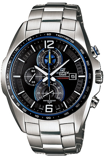 Мужские кварцевые наручные часы с хронографом (секундомером) Casio EFR-528D-1A коллекции Edifice. Калибр механизма — 5333. На данной модели отображается дата. Секундомер может отсчитывать до 40 минут с шагом 1/100 сек. Стрелки и метки покрыты люминесцентным напылением (светятся в темноте). Водонепроницаемость WR100 (10 атм). Завинчивающаяся задняя крышка.