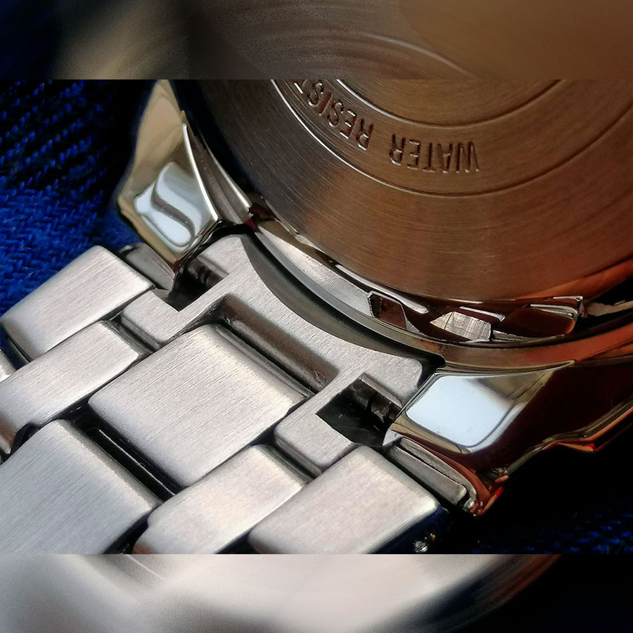 Водонепроницаемость WR100 (10 атм) позволяет не снимать часы при плавании и занятиях спортом. Размер корпуса 49,5×54,1×11,7 мм подчёркивает статусность и делает модель заметной на запястье, придавая образу брутальности.