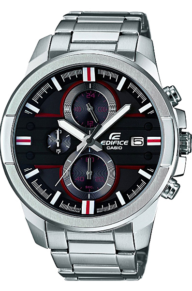 Мужские кварцевые наручные часы с хронографом (секундомером) Casio EFR-543D-1A4 коллекции Edifice. Калибр механизма — 5451. На данной модели отображается дата и время суток (24 часа). Секундомер может отсчитывать до 29 минут 59 секунд. Стрелки и метки покрыты люминесцентным напылением (светятся в темноте). Водонепроницаемость WR100 (10 атм). Завинчивающаяся задняя крышка.
