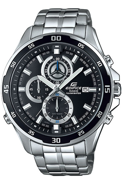 Мужские кварцевые наручные часы с хронографом (секундомером) и подсветкой Casio EFR-547D-1A коллекции Edifice. Калибр механизма — 5372. На данной модели отображается дата. Секундомер может отсчитывать до 59 минут 59 секунд. Диодная подсветка циферблата и люминесцентное напыление на стрелках и метках. Водонепроницаемость WR100 (10 атм). Завинчивающаяся задняя крышка. Размеры корпуса: Диаметр 44.9 мм; толщина 14 мм Гарантийный срок — 3 года (1 год от производителя + 2 года от магазина).