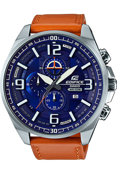 Мужские кварцевые наручные часы с хронографом (секундомером) Casio EFR-555L-2A коллекции Edifice. Калибр механизма — 5517. На данной модели отображается дата. Секундомер может отсчитывать до 59 минут 59 секунд с шагом 1/10 сек. Стрелки и метки покрыты люминесцентным напылением (светятся в темноте). Водонепроницаемость WR100 (10 атм). Завинчивающаяся задняя крышка.