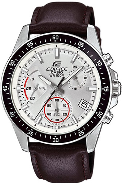 Мужские кварцевые наручные часы с хронографом (секундомером) Casio EFV-540L-7A. Коллекция Edifice. Калибр механизма — 5563. На данной модели отображается дата и время суток (24 часа). Секундомер может отсчитывать до 9 минут 59 секунд. Стрелки и метки покрыты люминесцентным напылением (светятся в темноте). Водонепроницаемость WR100 (10 атм). Завинчивающаяся задняя крышка.
