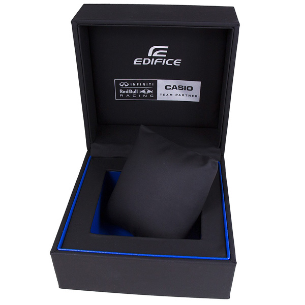 Кварцевые мужские наручные часы с термометром Casio ERA-201RBK-1A коллекции Edifice. Серия Red Bull. Калибр механизма — 5418. Функциональность данной модели: термометр (измерение в диапазоне –10–60°C), формат времени 12/24, функция летнего времени (DST), мировое время 48 городов (31 часовой пояс), автоматический календарь до 2099 года, 5 независимых будильников, сигнал начала часа, секундомер с точностью 1/100 секунды и измерением до 23 часов 59 минут 59,99 cек., таймер обратного отсчета (диапазон измерения до 60 минут), функция выключения звука кнопок (Mute), диодная подсветка циферблата с функцией авто (включается при наклоне часов на 40°) и люминесцентное напыление на стрелках и метках. Водонепроницаемость WR100 (10 атм).