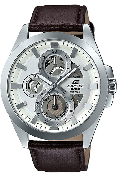 Мужские кварцевые наручные часы Casio ESK-300L-7A коллекции Edifice. Калибр механизма — 5486. На данной модели отображается дата, день недели и время суток (24-х часовая шкала). Стрелки и метки покрыты люминесцентным напылением (светятся в темноте). Водонепроницаемость WR100 (10 атм). Завинчивающаяся задняя крышка.