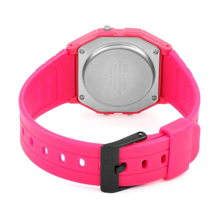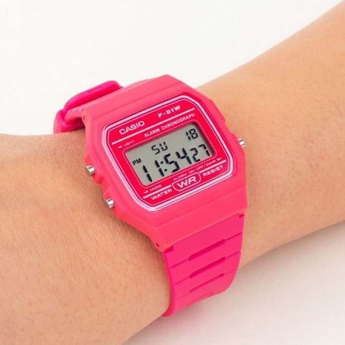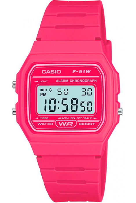 Электронные кварцевые наручные часы Casio F-91WC-4A с цифровой индикацией времени. Калибр механизма — 593. Функциональность данной модели: формат времени 12/24, автоматический календарь с установкой 28 дней на февраль, будильник, сигнал начала часа, секундомер с точностью 1/100 секунды и измерением до 59 минут 59,99 cек., диодная подсветка циферблата. Водонепроницаемость WR (3 атм). Размеры корпуса: (ШxВxТ) 35.2x38.2x8.5 мм. Гарантийный срок — 3 года (1 год от производителя + 2 года от магазина).