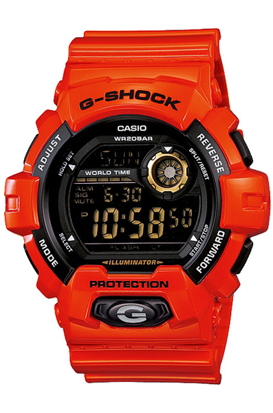 Противоударные кварцевые мужские наручные часы Casio G-8900A-4E коллекции G-Shock с цифровой индикацией времени. Калибр механизма — 3285. Функциональность данной модели: формат времени 12/24, автоматический календарь до 2099 года, функция летнего времени (DST), мировое время 48 городов (31 часовой пояс), 5 независимых будильников, сигнал начала часа, секундомер с точностью 1/100 секунды и измерением до 23 часов 59 минут 59,99 cек., таймер обратного отсчета (диапазон времени 24 часа), электролюминесцентная подсветка циферблата с функцией авто (включается при наклоне часов на 40°), функция выключения звука кнопок (Mute). Водонепроницаемость WR200 (20 атм).