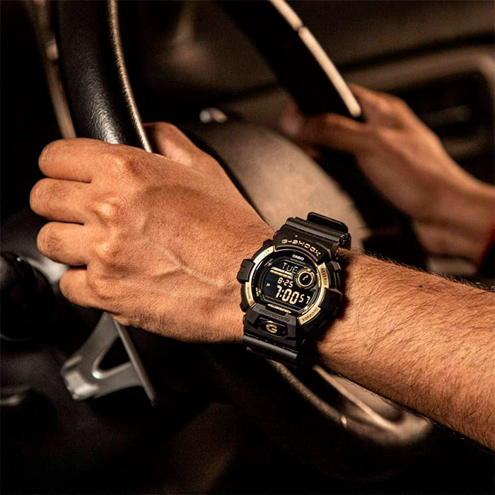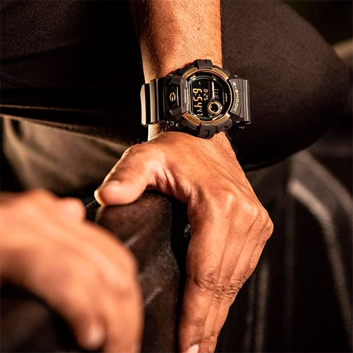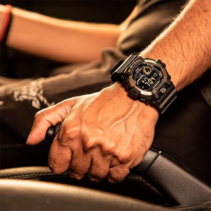 Противоударные кварцевые мужские наручные часы Casio G-8900GB-1 коллекции G-Shock с цифровой индикацией времени. Калибр механизма — 3285. Функциональность данной модели: формат времени 12/24, автоматический календарь до 2099 года, функция летнего времени (DST), мировое время 48 городов (31 часовой пояс), 5 независимых будильников, сигнал начала часа, секундомер с точностью 1/100 секунды и измерением до 23 часов 59 минут 59,99 cек., таймер обратного отсчета (диапазон времени 24 часа), электролюминесцентная подсветка циферблата с функцией авто (включается при наклоне часов на 40°), функция выключения звука кнопок (Mute). Водонепроницаемость WR200 (20 атм). Размеры корпуса: (ШxВxТ) 48.7x55.2x15.2 мм. Гарантийный срок — 3 года (1 год от производителя + 2 года от магазина).