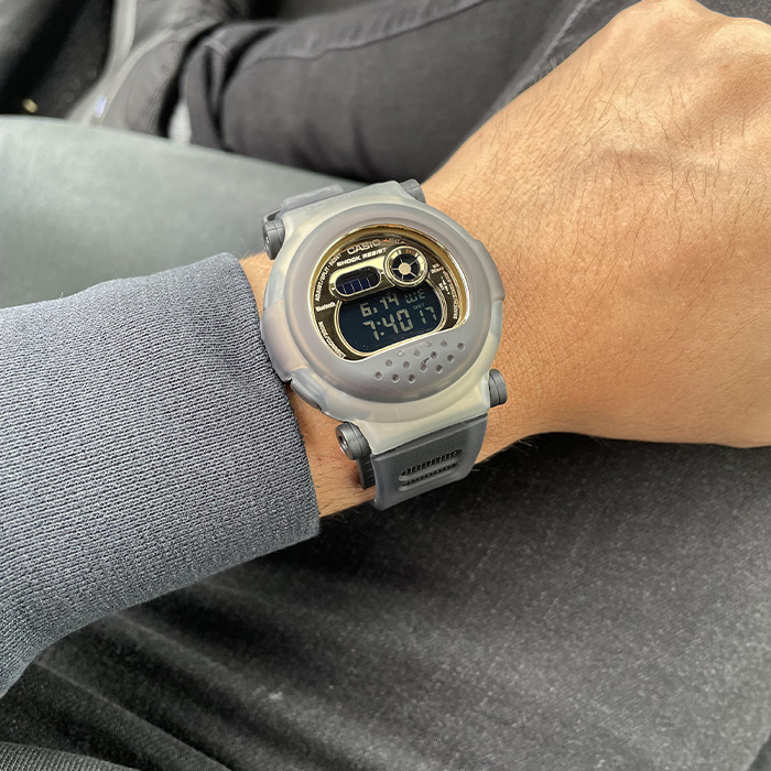 Противоударные кварцевые мужские наручные часы Casio G-B001MVB-8 коллекции G-Shock с технологией Bluetooth®. Серия DW-001 появилась в 1994 году, отличившись концепцией дизайна Capsule Tough. Компания Casio представляет новую эволюцию часов, основанную на передовых технологиях, с карбоновой защитной конструкцией основания, металлическим корпусом и функциональностью Smartphone Link. Кроме того, съемный безель из уретана придает изделию разнообразный облик, предлагая на выбор два безеля — металлический или уретановый. Калибр механизма — 3519. С помощью Bluetooth® вы можете подключить часы к смартфону и с помощью приложения CASIO WATCHES получить доступ к полезным функциям. Часы автоматически связываются с телефоном через Bluetooth® и проверяют точность времени 4 раза в сутки. Настройка мирового времени (300 городов). Функция поиска телефона, можно включить тоновый сигнал на телефоне, что позволит быстро найти телефон. Запись текущего местоположения (TIME and PLACE). Настройка и управление таймером, секундомером и будильником. Функциональность данной модели: формат времени 12/24, автоматический календарь до 2099 года, отображение дня недели на русском языке, функция летнего времени (DST), функция мирового времени времени в 38 часовых поясах (38 городов + всемирное координированное время), 5 независимых будильников, сигнал начала часа, секундомер с шагом 1/100 секунды и измерением до 23 часов 59 минут 59 cек., таймер обратного отсчета (диапазон времени 24 часа), диодная подсветка циферблата с функцией авто (включается при наклоне часов на 40°) и регулировкой времени подсветки (1.5 или 3 секунды), режим выключения звука нажатия кнопок (Mute). Инверсный дисплей. Корпус часов изготовлен из нержавеющей стали и карбона, изготовленного по технологии Carbon Core Guard. Водонепроницаемость WR200 (20 атм). Размеры корпуса: (ШхВхТ) 47x50.3x18.7 мм. Гарантийный срок — 3 года (1 год от производителя + 2 года от магазина).