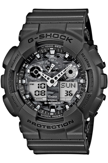 Противоударные кварцевые мужские наручные часы Casio GA-100CF-8A коллекции G-Shock цифровой+стрелочной индикацией времени. Калибр механизма — 5081. Функциональность данной модели: формат времени 12/24, автоматический календарь до 2099 года, функция летнего времени (DST), мировое время 48 городов (29 часовых поясов), 5 независимых будильников, сигнал начала часа, секундомер с точностью 1/1000 секунды и измерением до 99 часов 59 минут 59,99 cек., функция расчета средней скорости движения, таймер обратного отсчета (диапазон времени 24 часа), диодная подсветка циферблата с функцией авто (включается при наклоне часов на 40°). Водонепроницаемость WR200 (20 атм). Размеры корпуса: Диаметр 50.5 мм; толщина 16.5 мм Гарантийный срок — 3 года (1 год от производителя + 2 года от магазина).