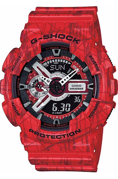 Противоударные кварцевые мужские наручные часы Casio GA-110SL-4A коллекции G-Shock цифровой+стрелочной индикацией времени. Калибр механизма — 5146. Функциональность данной модели: формат времени 12/24, автоматический календарь до 2099 года, функция летнего времени (DST), мировое время 48 городов (29 часовых поясов), 5 независимых будильников, сигнал начала часа, секундомер с точностью 1/1000 секунды и измерением до 99 часов 59 минут 59,99 cек., функция расчета средней скорости движения, таймер обратного отсчета (диапазон времени 24 часа), диодная подсветка циферблата с функцией авто (включается при наклоне часов на 40°). Водонепроницаемость WR200 (20 атм).