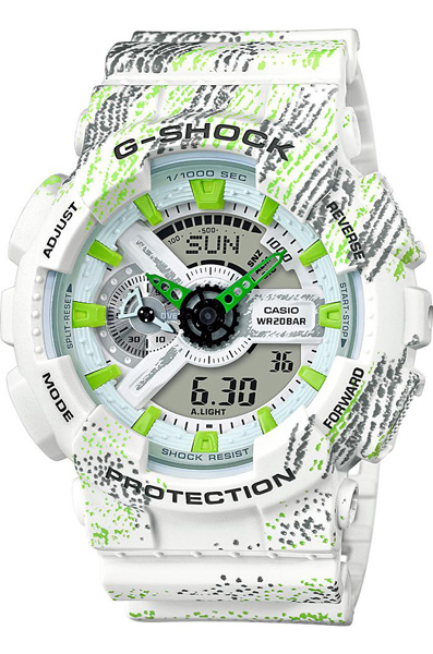 Противоударные кварцевые мужские наручные часы Casio GA-110TX-7A коллекции G-Shock цифровой+стрелочной индикацией времени. Калибр механизма — 5146. Функциональность данной модели: формат времени 12/24, автоматический календарь до 2099 года, функция летнего времени (DST), мировое время 48 городов (29 часовых поясов), 5 независимых будильников, сигнал начала часа, секундомер с точностью 1/1000 секунды и измерением до 99 часов 59 минут 59,99 cек., функция расчета средней скорости движения, таймер обратного отсчета (диапазон времени 24 часа), диодная подсветка циферблата с функцией авто (включается при наклоне часов на 40°). Водонепроницаемость WR200 (20 атм).