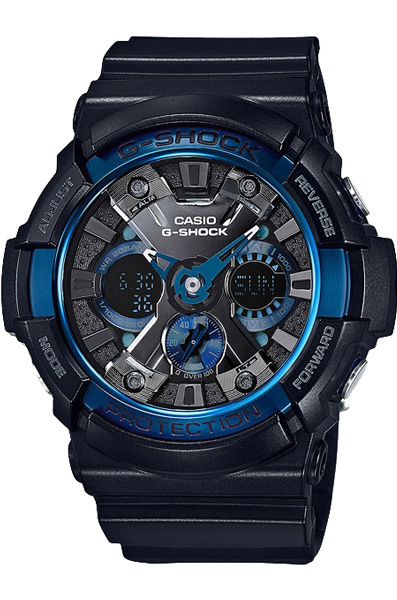 Противоударные кварцевые мужские наручные часы Casio GA-200CB-1A коллекции G-Shock цифровой+стрелочной индикацией времени. Калибр механизма — 5229. Функциональность данной модели: формат времени 12/24, автоматический календарь до 2099 года, функция летнего времени (DST), мировое время 48 городов (29 часовых поясов), 5 независимых будильников, сигнал начала часа, секундомер с точностью 1/1000 секунды и измерением до 99 часов 59 минут 59,99 cек., функция расчета средней скорости движения, таймер обратного отсчета (диапазон времени 24 часа), диодная подсветка циферблата с функцией авто (включается при наклоне часов на 40°). Водонепроницаемость WR200 (20 атм).