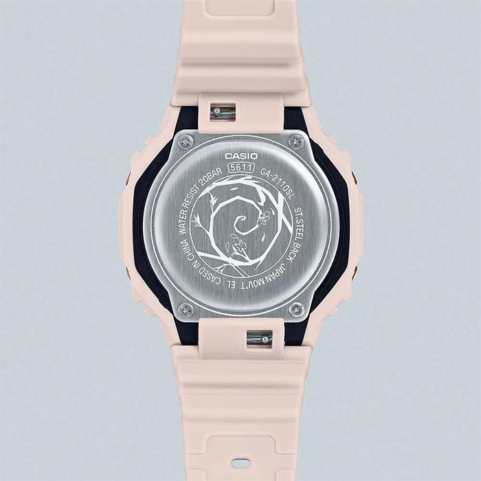 Противоударные кварцевые наручные часы Casio GA-2110SL-4A7 коллекции G-Shock с цифровой+стрелочной индикацией времени. Тонкий корпус для данной коллекции — 11.8 мм. Калибр механизма — 5611. Корпус усилен углеродным волокном, изготовленным по технологии Carbon Core Guard. Функциональность данной модели: формат времени 12/24, автоматический календарь до 2099 года, функция летнего времени (DST), мировое время 48 городов (31 часовом поясе), двойное время, 5 независимых будильников, сигнал начала часа, секундомер с точностью 1/100 секунды и измерением до 23 часов 59 минут 59 cек., таймер обратного отсчета (диапазон времени 24 часа), двойная диодная подсветка циферблата с возможностью выбора времени свечения (1.5 или 3 секунды), функция выключения звука нажатия кнопок (Mute), смещение стрелок для удобного просмотра информации на цифровом экране. Стрелки и метки покрыты люминисцентным напылением (светятся в темноте). Водонепроницаемость WR200 (20 атм). Размеры корпуса: (ШxВxТ) 45.4x48.5x11.8 мм. Гарантийный срок — 3 года (1 год от производителя + 2 года от магазина).
