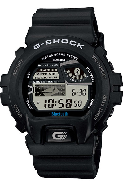 Противоударные кварцевые наручные часы Casio GB-6900AA-1B коллекции G-Shock с модулем Bluetooth. Калибр механизма — 3407. С помощью технологии Bluetooth данная модель имеет возможность поддерживать связь с системой IOS, которая установлена на телефонах iPhone 5 и 4S. Возможности Bluetooth в данной модели: звуковые и вибросообщения о входящих звонках, смс и письмах; сообщения о том, что вы слишком далеко удалились от своего телефона; часы могут посылать звуковое сообщение на телефон, если вы его потеряли; синхронизация времени с вашим iPhone. Функциональность данной модели: формат времени 12/24, автоматический календарь до 2099 года, функция летнего времени (DST), мировое время 100 городов (35 часовых поясов), 5 независимых будильников с вибрасигналом, сигнал начала часа с вибрасигналом, секундомер с точностью 1/100 секунды и измерением до 23 часов 59 минут 59,99 cек., таймер обратного отсчета (диапазон времени 24 часа), электролюминесцентная подсветка циферблата, индикатор низкого уровня заряда батареи, функция выключения звука кнопок (Mute). Водонепроницаемость WR200 (20 атм).