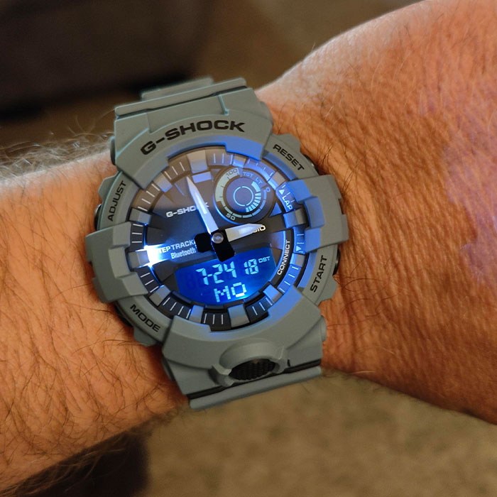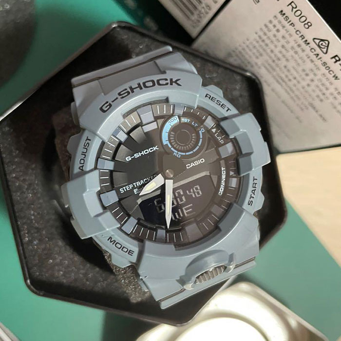 Противоударные кварцевые мужские наручные часы Casio GBA-800UC-2A коллекции G-Shock с модулем Bluetooth. Калибр механизма — 5554. Данная модель предназначена для занятия бегом и оснащена трехосевым акселерометром для точности считывания движений человека в пространстве. С помощью синхронизации со смартфоном через модуль Bluetooth и приложения G-SHOCK Connected можно увидеть график активности в метаболическом эквиваленте за день, неделю или месяц. Помимо этого, для отслеживания уже совершенных и планирования будущих тренировок G-SHOCK Connected может выводить на дисплей телефона данные о дистанции, шагах, сожженных калориях и уровне МЕТ, а также карты маршрутов. Функциональность данной модели: формат времени 12/24, автоматический календарь до 2099 года, функция летнего времени (DST), функция мирового времени, 5 независимых будильников, сигнал начала часа, секундомер с точностью 1/100 секунды и измерением до 23 часов 59 минут 59,99 cек. записная книжка для результатов секундомера на 200 записей, диодная подсветка циферблата с функцией авто (включается при наклоне часов на 40°), функция выключения звука кнопок (Mute). Функция сдвига стрелок в нейтральное положение для удобства обзора цифровой индикации. Водонепроницаемость WR200 (20 атм). Размеры корпуса: (ШхВхТ) 48.6x54.1x15.5 мм Гарантийный срок — 3 года (1 год от производителя + 2 года от магазина).