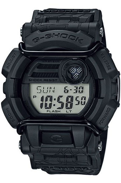 Противоударные кварцевые наручные часы Casio GD-400HUF-1E коллекции G-Shock с цифровой индикацией времени. Лимитированная серия, дизайн разработан совместно с компанией HUF (Производитель одежды). Калибр механизма — 3434. Функциональность данной модели: режим сохранения энергии, индикатор заряда батареи, формат времени 12/24, автоматический календарь до 2099 года, функция летнего времени (DST), мировое время 48 городов (31 часовой пояс), 5 независимых будильников, сигнал начала часа, секундомер с точностью 1/100 секунды и измерением до 23 часов 59 минут 59,99 cек., таймер обратного отсчета (диапазон времени 24 часа), диодная подсветка циферблата с функцией авто (включается при наклоне часов на 40°), функция выключения звука кнопок (Mute). Водонепроницаемость WR200 (20 атм).