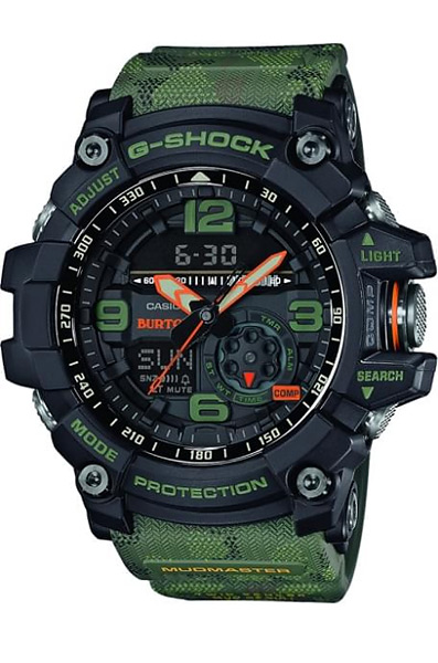 Противоударные кварцевые наручные часы Casio GG-1000BTN-1A Mumaster коллекции G-Shock с компасом и термометром. Калибр механизма — 5476. Функциональность данной модели: формат времени 12/24, автоматический календарь до 2099 года, функция летнего времени (DST), мировое время 48 городов (29 часовых поясов), 5 независимых будильников, сигнал начала часа, секундомер с точностью 1/100 секунды и измерением до 23 часов 59 минут 59,99 cек., таймер обратного отсчета (диапазон времени 60 минут), диодная подсветка циферблата с функцией авто (включается при наклоне часов на 40°), функция выключения звука кнопок (Mute). Водонепроницаемость WR200 (20 атм).
