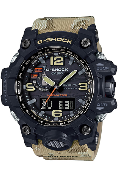 Противоударные кварцевые наручные часы на солнечной батарее Casio GWG-1000DC-1A5 Mudmaster коллекции G-Shock с компасом, термометром, высотомером и барометром. Калибр механизма — 5463. Технология Smart Access, удобная заводная головка, которая ускоряет процесс настройки необходимых функций. Функциональность данной модели: радиоконтроль точного времени (Wave Ceptor), построение графика атмосферного давления (измерения каждые 2 часа), режим сохранения энергии, индикатор заряда батареи, формат времени 12/24, автоматический календарь до 2099 года, функция летнего времени (DST), мировое время 29 городов (29 часовых поясов), 5 независимых будильников, сигнал начала часа, секундомер с точностью 1/100 секунды и измерением до 23 часов 59 минут 59,99 cек., таймер обратного отсчета (диапазон времени 60 минут), диодная подсветка циферблата с функцией авто (включается при наклоне часов на 40°), функция выключения звука кнопок (Mute). Сапфировое стекло. Дополнительная защита от пыли. Водонепроницаемость WR200 (20 атм).
